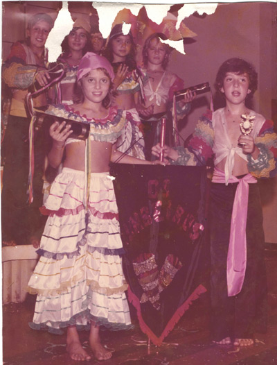 Foto de 1974, do Bloco “Rumbeiros”, na matinê de Carnaval da Associação Atlética Ituveravense. (1) Jacinta Maria Oliveira Barbosa (in memorim), (2) Alfredo Humberto Quatroti Pimenta, (3) Paula Chaibub Rodrigues Mateus, (4) Deborah Mirandola Barbosa Falleiros, (5) Romel Athayde França e (6) Romeu Barbosa Júnior