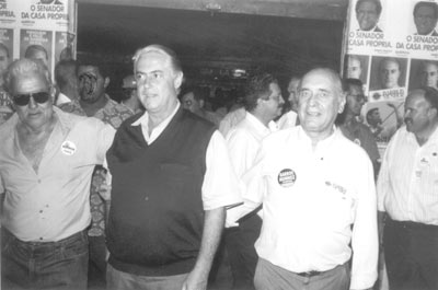 Foto de 1994, quando esteve em Ituverava o candidato ao governo do Estado de São Paulo, o deputado Barros Munhoz, que foi recepcionado pelo então Prefeito, o médico Archibaldo Moreira Coimbra. (1) Barros Munhoz (2) o prefeito Archibaldo Moreira Coimbra; (3) o deputado estadual Rafael Silva, e (4) o candidato a senador Romeu Tuma. O vice na chapa de Barros Munhoz era o atual secretário da Agricultura de São Paulo, Arnaldo jardim