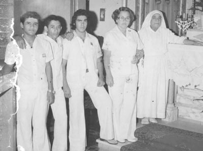 Foto de 1977, de equipe de enfermagem da Santa Casa de Ituverava, na capela da instituição de saúde. (1) a madre-superiora Michelina Renna,