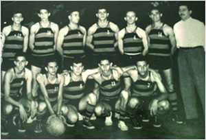 Foto de 1.955, da equipe de basquetebol da Associação Atlética Ituveravense, que representou Ituverava no Troféu Bandeirantes. Em pé: (1) José Waltenior Mauad, (2) Francisco Trajano Borges (“Trajaninho”), (3) José Calin Germano,