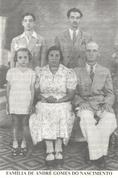 Família Nascimento. (1) e (2) os patriarcas André Gomes do Nascimento e Maria Joséfa do Nascimento, (3) Carolina Gomes do Nascimento Silveira, casada com Delcides Silveira, (4) Benedito Gomes do Nascimento (in memoriam), e (5) Agostinho Gomes do Nascimento, casado com Mirtes Silva Nascimento