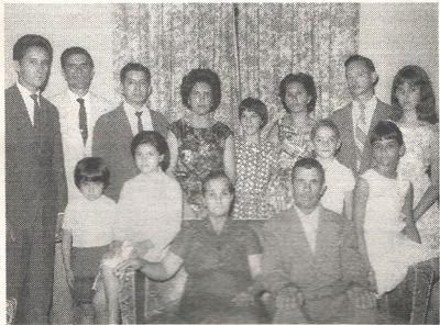 Família Lopes. (1) e (2) os patriarcas Adelino Augusto Lopes e Maria Rosa da Conceição Lopes, os filhos (3) José Augusto Lopes, (4) João Augusto Lopes e (5 e (6) Josepha Rosa Lopes de Matos, casada com Benedicto de Mattos (in memmerian), (7), Tereza Maria Lopes (in memoriam), (8) e (9) Nair Lopes Martins, casada com Wilton Martins (in memoriam), (10) Siri Edna Martins (in memoriam), (11) Maria Emília de Matos, (12) Maria da Graça de Matos, (13) Adelino de Jesus Martins (in memoriam) e (14) Maria Ernestina Martins