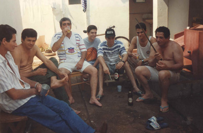 Foto de agosto de 96 – Dia dos pais -(1) Fernando Gonçalves Teixeira, (2)Maurício Gonçalves Teixeira, (3) Jarbas Barbosa de Oliveira,(4) Cleber Teixeira de Oliveira, (5)Glauber Alves de Oliveira,(6)Fábio Gonçalves Teixeira e (7)Alaor Gonçalves Teixeira