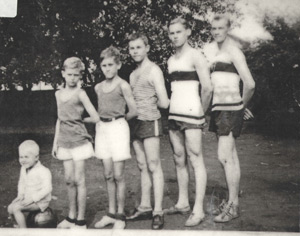 Em foto de 1935, os irmãos França, filhos do Jornalista Humberto França e Rina Bombig França, (1) Rubens França, (2) José França, (3) Joaquim França (“Quico”), (4) Antônio (“Tonico”) França, (5) Luiz França e (6) Moacir França