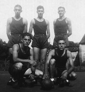 Foto do ano 1948, da equipe de basquetebol de Ituverava. Em pé da esquerda para direita: Mariano Gifone, Talico Trigo e José Jorge Mauad. Agachados: Antonio Jacob Kuri(Chanca) e José Antonio Jabur (Zuza)