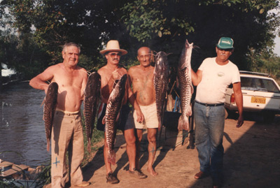 Foto de 1989, de uma Pescaria Fazenda Cabaçal. )1) Ernesto Chiconeli Filho (“Ernestinho Barbeiro”), (2) Paulo Nunes da Silva (“Macarrão”), (3) Cravinho, (4) José Castagine Netto (“Zé Chupeta”).