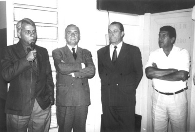 Em agosto de 1994, o prefeito Archibaldo Moreira Coimbra inaugurava o novo prédio do plantão policial em São Benedito da Cachoeirinha. (1) o delegado seccional de Ituverava, Alexandre Jorge Daur, (2) o prefeito Archibaldo Moreira Coimbra, (3) o delegado Seccional de Franca, Naur Aparecido Zerisse, (4) o vereador Benedito Soares da Silva Neto