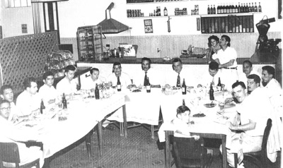 Foto de 1957, de re uma reunião de funcionários do Banco do Brasil, no Bar do Naném, que era instalado onde hoje é a Loja Enovação. (1) Antônio Silos de Carvalho, (2) Leonardo Lorechio Netto, (3) o convidado Osmar Chiconelli, (4) Celso Barbosa Sandoval, (5) Devayl Antônio Ciconelli, (6) Vitorio Restivo, (7) João Elíseo de Carvalho, (8) o contador da agência, Pedro Fleury, (9) o inspetor Mucio, (10) o chefe da Carteira Agrícola, José de Mello Borges, (11) Túlio Del Guerra, (12) Manoel Moreira Barbosa, (13) Antônio Peralta Cunha, (14) Fábio Lacerda Diniz, (15) o menino Ricardo Vasconcellos, filho do médio Mário Vianna de Vasconcelos, (16) e (17) o dono do bar, Namém Jorge e sua filha Berenice Mattar Jorge.