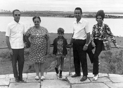 Foto de 1970, da família Joaquim de Menezes, em passeio turístico em Brasília: (1) e (2) o patriarca Joaquim de Menezes e a esposa Eurídice Franco Menezes; (3) o neto Sylvio Jorge de Menezes; (4) o filho Sylvio Franco de Menezes (5) e a nora Maria Aparecida Jorge de Menezes