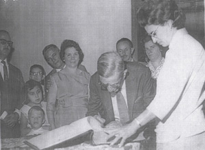 Foto de 1964, do casamento Civil de Neuza Maria Fonseca Teixeira. (1) o avô, José da Fonseca, (2) e (3) os pais Maria Eliza Fonseca Teixeira e Alberto Baptista Teixeira, (4) e (5) Milton Mambrim e Dona Santa Mambrin, (6) a Juíza de Paz, Maria Cristina Figueiredo Restivo (“Filinha”) , (7) a irmã da noiva, Emiliana Inês Fonseca Pagioro, (8) e (9) os primos Lúcia Fonseca Perez e José da Fonseca Neto