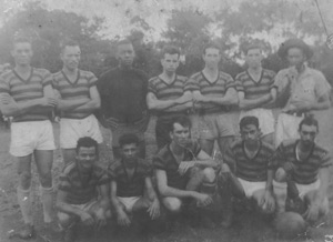Foto de 1955, do time de futebol da Fazenda São Sebastião, de propriedade da família de Luiz Dalmázio Cristóvão. (1) Onofre, (2) Antônio, (3) Quintino, (4) Jorge de Oliveira, (5) Eurípedes (“Toti”), (6) Luizinho Vigarani, (7) Vadico, (8) Baixinho, (9) Firmino, (10) Domingos de Oliveira, (11) João da Mata e (12) Geraldo Celestino