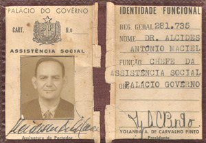 Carteira de Chefe da Assistencial do Palácio do Governo, do médico Alcides Antônio Maciel, assinada pela primeira dama do Estado de São Paulo, Yolanda A. de Carvalho Pinto, no governo Carvalho Pinto, de 1959 a 1961. Alcides Maciel, que foi dos políticos de mais prestígio na região, foi Prefeito de Igarapava de 1955 a 58 e de 64 a 68, além de vereador por 2 mandatos. Ele também foi secretário de Assistência aos Municípios do Estado de São Paulo, (pasta que posteriormente passou a se chamar Secretaria do Interior), também no governo Carvalho Pinto. Ele é pai do médico e vice-prefeito Alcides Antônio Maciel Júnior.
