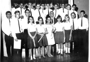 Formatura dos alunos da turma de 1966, da Escola do Comércio, em solenidade realizada na Associação Atlética Ituveravense: (1) Ivan Cardoso, (2) José Benedito Galdiano, (3) Joaquim Rodrigues da Rocha Neto, (4) Sérgio Corona, (5) Zevair de Menezes, (6) Augusto César Ferreira (Diguidim), (7) Paulo Benedito Generoso,