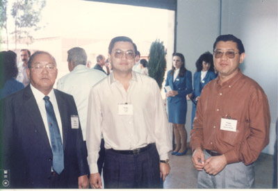 Foto de 9 de julho de 1991, da inauguração da Fiação Salto Belo, do Grupo Maeda. (1) O comendador Takayuki Maeda, na época presidente do Grupo, que faleceu aos 83, dia 14 de junho de 2008; (2) os filhos do Comendador, Celso Maeda e
