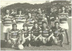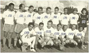 Foto dos anos 60, de uma partida de futebol entre um time da Rádio Cultura de Ituverava, contra artista que se apresentaram na cidade. (1) Mateuzinho, (2) Edson Pereira (“Edson Sapateiro”) (3) Calixtrato de Oliveira Campos Filho (“Caco”) (in memoriam), (4) Expedito Rodrigues Porto (“Rei do Gado”) (in memoriam), (5) Osvaldo Valize (“Valizinho”) (in memoriam), (6) Atílio Mendes Lopes (“Barão”), (7) Eurípedes Jorge, (8) Atílio Ragazani, (9) Antônio Carlos, (10) Tiãozinho (massagista), (11) Fábio Pereira, (12) Padre José Mainardi, (13) Zito Rocha (in memoriam), (14) Paulo Nunes (“Macarrão”), (15) José Valizi e (16) Altair.