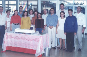 Foto do ano de 2000, da equipe de funcionário do Benespa, hoje Santander. (1)Benedito Antônio de Carvalho (“Dito Catarino”), (2) Sônia Maria de Souza Guerra, (3) Suzelei Alves Cortez, (4) Adelino de Jesus Marins (In memoriam), (5) Maria da Graça Matos Silva, (6) Nilda Carange Bueno, (7) Eliana Diniz, (8) Flávia de Matos Silva,
