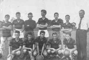 Foto de 1956, do time de jovens comandado pelo esportista Arlindo Bordon (“Batatinha”) (in memoriam). (1) Celso Nunes (“Piolim”) (in memoriam), (2) Waldir Barbosa de Oliveira (in memoriam), (3) Acyr Chéchia (in memoriam), (4) Omildes de Paula (“Têti”), (5) Rubens Mendes Maina, (6) Antônio Paulo Arena Cunha (“Nanico”) (in memoriam), (7) Arlindo Bordom (“Batatinha”) (in memoriam), (8) Lico Chapine,