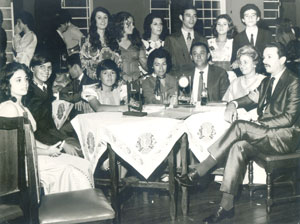Baile da Balança, promovido pelo Lions Clube de Ituverava em 1.974, no salão social da Associação Atlética Ituveravense. (1) Margaret Germano Del Guerra, hoje casada com Waldemar Telles Torraca, (2) Francisco Prado Figueiredo, filho do médico Eduardo Prado de Figueiredo, família que por muitos anos residiu em Ituverava, (3) Elza Maria Sandoval, hoje casada com Walter Shimizo, (4) e (5) o casal Olinda de Paula e Edgar de Paula, (6) e (7) Edna Mariano Viaro e Arsênio Viaro, as filhas (8) Leila Viaro e (9) Cleuza Viaro, hoje casada com Hélio Dias Campos (“Lelo”), (10) Marilu Viaro, (11) Denize Restivo, filha de Vitório Restivo e Maria Cristina Figueiredo Restivo (“Filinha”), (12) Edgar de Paula Filho e (13)Emerson de Paula, filhos de Edgar de Paula.
