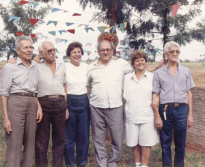 Foto dos anos 80, a família dos irmãos Miguel Moysés: (1) Moysés Miguel, casado com Alice Jugdar Moysés; (2) Cecílio Moysés, casado com Jamila Abdalla Moysés; (3) Saduna Moysés Jorge; casada com Abdalla Jorge (“Gaúcho”); (4)Alexandre Miguel (“Bueno”), casado com Inah Ribeiro Miguel; (5)Salima Moysés Cheibub, casada com Jorge Cheibub, e (6) Salim Moysés, casado com Marli Jardim Moysés, que é única que está viva.