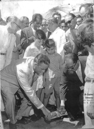 Foto de 1958, do lançamento da pedra fundamental do Fórum de Ituverava, que foi construído onde hoje é a Delegacia do Município. (1) o prefeito João Athayde de Souza, (2) o juiz de Direito, dr. Amintas Machado de Azevedo, (3) o advogado Francisco Basileu Barbosa, os vereadores (4) Adhemar Cassiano, (5) José Antônio Salgado, (6) Nestor Alves Ferreira, (7) o secretário da Prefeitura, Moacyr França