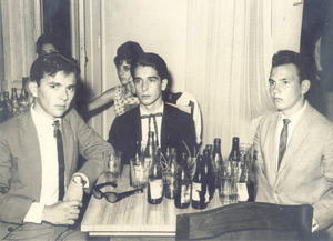 Baile de formatura dos alunos do curso de Técnico em Contabilidade, da Escola do Comércio, em 1966, no salão da Associação Atlética Ituveravense. (1) Jaime Pandolfi, (2) Aldo Junqueira dos Santos, (3) Eurípedes Pistore e ao fundo (4) Lúcia Rosa Vidal