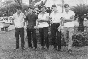 Foto tirada na Praça 10 de Março, no ano de 1966, por Edson Barbosa Andréo. (1) José Braz, (2) José Augusto Botelho (“Zé Galinha)”, (3) José Roberto Pereira dos Santos (“Robertinho Lateiro”), (4) Cavalcante Viana Galle e (5) Lázaro Antônio Severino