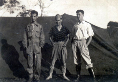 Foto de 1942, em um acampamento, provavelmente na cidade de Orlândia, os amigos: (1) Assad Chaibub (“Felício”), (3) Geraldo Mendes Ferreira (“Nena”) e José Nunes da Silva (“Zé Bacalhau”), irmão do ex-prefeito e ex-deputado Estadual, Hélvio Nunes da Silva (“Zito”).
