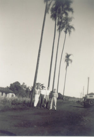 Foto do ano de 1951, de amigos nos antigos coqueiros da rua Rua André Gomes do Nascimento, (ao fundo da rodoviária, rua da Chácara do Kadão). (1) Walter Faleiros Telles, dentista, (2) Leonardo Lorechio Neto, bancário aposentado (3) João Contart Filho, professor de matemática, já falecido e (4) Sílvio Contart, médico que residia em Ribeiro Preto, também falecido