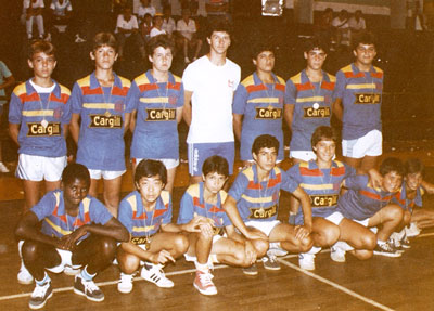 Equipe de voleibol de Ituverava, do ano de 1987, da entrega de medalhas da terceira colocação conquistada no Campeonato Regional do Estado de São Paulo, na cidade de Orlândia, ocasião em que a equipe ituveravense venceu Ribeirão Preto, por dois sets a um. A equipe era treinada pelo professor Márcio de melo desde 1985: (1) Gustavo Barreto (Barretinho), (2) Vicente Duzzi (Vicentinho), (3) Elton, (4) professor Márcio Melo, treinador da equipe, (5) Renato Muchir, (6) Luiz Augusto Castro de Souza (Guto) e (7) Gustavo Chereguine. Agachados: (8) Claudinei Vantecir, (9) Fabiano Maeda, (10) Guilherme Romanini, (11) Márcio Teoro, (12) José Mariani Filho, (13) Rafael Emídio Mendonça de Freitas de Matos (“Gabiru”) e (14) Jeferson Nogueira (Jefinho)