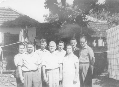 Foto da década de 50 da família Martins: (1) Antonio Martins (“Toninho”); (2) Willis Martins (“Nenzo”), casado com Terezinha Margarida Pinto Martins, (3) Walter Martins – falecido, (4) Wilton Martins (“Nequinha”), falecido, casado com Nair Lopes Martins; (5) Willian Martins (“Lilo”), casado com Silvéria Menezes (“dona China”), ambos falecidos; os patriarcas (6) e (7) Afonso Martins e Ernestina Bueno de Morais, (8) Wilson Martins, falecido, casado com Ruth Zema Martins