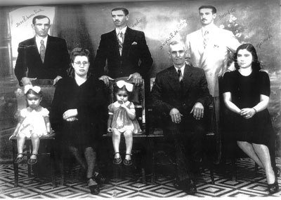 Foto da 1.936, da família do major Domingos Ribeiro dos Santos Júnior, que emprestou seu nome ao antigo Abrigo de Velhos. Ele foi casado com Mátria Constância da Silveira. (1) o patriarca Domingos Ribeiro dos Santos, os filhos (2) e (3) José Ribeiro de Paula e sua esposa Ercina Ribeiro dos Santos e as filhas (4) Helena Ribeiro dos Santos e (5) Vani Ribeiro dos Santos; (6) Amélio Ribeiro de Paulo, casado com Helena Liporaci Ribeiro; (7) Benedito Ribeiro dos Santos, casado com Matilde Ribeiro dos Santos e (8) Aparecida Ribeiro dos Santos Olivieri, casada com Amélio Ribeiro de Paula