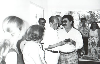 Foto de 1992, de homenagem que a diretoria da Associação Atlética Ituveravense prestou ao editor da Tribuna de Ituverava, o jornalista Adhemar Cassino, como pai do ano. Na ocasião o presidente da AAI, Paulo Sérgio de Castro Perez e sua diretoria entregaram uma placa de homenagem, na residência do jornalista. (1) Adhemar Cassiano, (2) o diretor do clube, José Augusto Vieira de Matos, (3) e (4) a esposa e filha do homenageado, Guiomar Alves Ferreira Cassiano e Maria Aparecida Alves Cassiano, (5) Luiz Ferreira de Freitas, cunhado do jornalista, (6) e (7) o diretor da AAI, Jair Shorles e sua esposa, Tânia da Silva Shorles