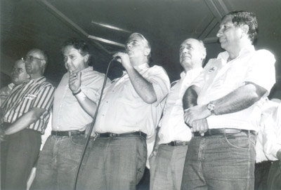 Foto de 1994, de um comício em Ituverava, em frente ao Banco do Brasil, dos então candidatos a governador do Estado de São Paulo, Barros Munhoz e vice Arnaldo Jardim. (1) o deputado estadual Web Rezeck, (2) o secretário de Estado da Educação, Wagner Rossi, (3) o candidato Barros Munhoz, hoje presidente da Assembléia Legislativa de São Paulo; (4) o prefeito Archibaldo Moreira Coimbra, e (5) Wilson Toni, que foi deputado estadual