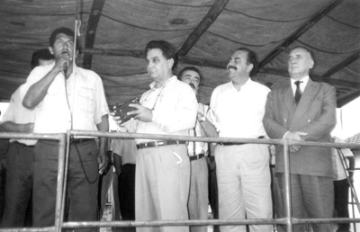 Foto do ano de 1994, da inauguração das casas populares do Conjunto Habitacional Benedito Trajano Borges. (1) o vereador Benedito Soares da Silva Neto, (2) o radialista João Peres dos Santos, (3) o vice-prefeito Antoninho Carlos Vieira de Matos, (5) o secretário da Habitação, Arnaldo Jardim e (6) o prefeito Archibaldo Moreira Coimbra