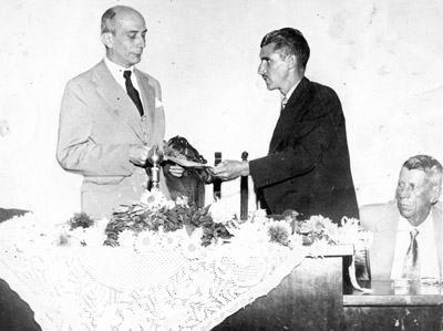 Foto de 1959, quando o presidente da Câmara Municipal de Ituverava, José de Paula Leão homenageava o então deputado federal Ulysses Guimarães. (1) Ulisses Guimarães,