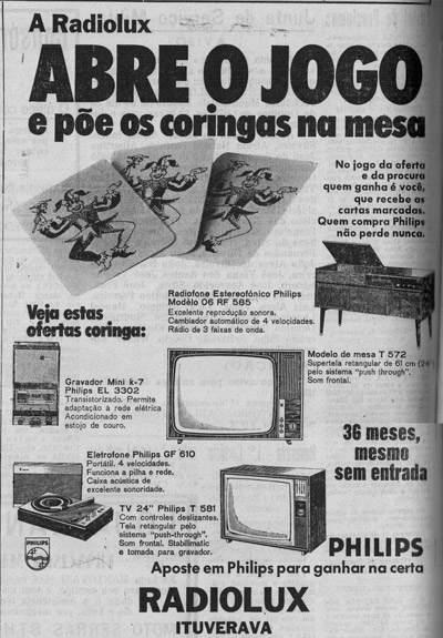 Em 1973, a tribuna veiculava publicidade da Rádiolux, empresa ituveravense que era uma das mais bem montadas lojas de eletrodomésticos da região, incluindo Ribeirão Preto. Pelo nível da propaganda, pode se avaliar a visão dos proprietários, os empresários Eugênio (“Nenê”) Cordaro e Salvador Contart (falecidos)