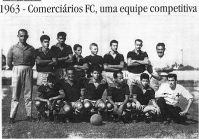 Foto de 1963, da equipe dos Comerciários Futebol Clube, que era comandada pelos esportistas Vicente de Melo, Marcos Reducínio de Melo e Jorge Mauad Neto (“Abobrão”). (1) Jorge Mauad Neto, (2) Ari Teles (“Ari Pipino”), (3) Caçapa, (4) João Pancinha, (5) Branco, (6) Estevinho José Alves, (7) Milton de Melo, (8) Vicente de Melo (técnico), (9) Luiz Carlos Silva, Jayme de Melo, (10) Márcio Sandoval, (11) Edson Pereira, (12) Benedito Mateus