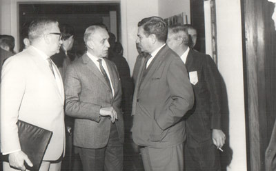 Foto de 28 de maio a 1º de junho de 1968, vereadores de Ituverava participaram do XII Congresso Estadual dos municípios, promovido pela Associação Paulista dos Municípios, em Águas de Lindóia. (1) o então Governador Carvalho Pinto, e os vereadores (2) Antonio (“Totonho”) Sandoval e (3) Jones Borges do Nascimento (“Didico”)