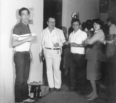 1º Seminário de Irrigação da Alta Mogiana, realizado em 25 de agosto de 1984. (1) o engenheiro Dirceu D’Alckmin Teles, que foi um dos organizadores do evento, (2) o professor José Ferreira de Assis (in memoriam), que também era advogado e foi diretor da Faculdade de Filosofia Ciências e Letras de Ituverava; (3) e (4) o empresário Francisco Mantovani Filho (in memoriam), que na época era presidente da Fundação Educacional de Ituverava e a sua esposa Zélia Queiróz Mantovani, que é empresária.