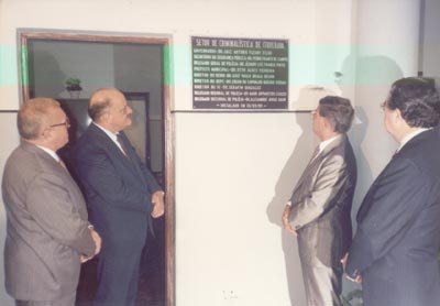 Em 20 de setembro de 1991, o prefeito dr. Ecyr Alves Ferreira inaugurava o Setor de Criminalística da Polícia Civil de Ituverava. (1) o diretor do Derin, dr. Luiz Paulo Braga Braun, (2) o Delegado Geral de Polícia, Dr. Álvaro Luz Franco Pinto,