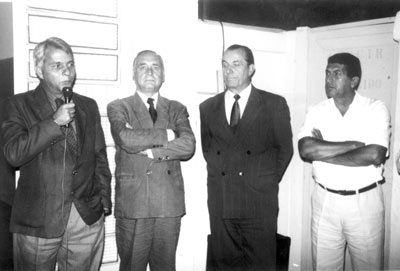 Em agosto de 1994, o prefeito Archibaldo Moreira Coimbra inaugurava o novo prédio do plantão policial em São Benedito da Cachoeirinha. (1) o delegado seccional de Ituverava, Alexandre Jorge Daur, (2) o prefeito Archibaldo Moreira Coimbra, (3) o delegado Seccional de Franca, Naur Aparecido Zerisse, (4) o vereador Benedito Soares da Silva Neto