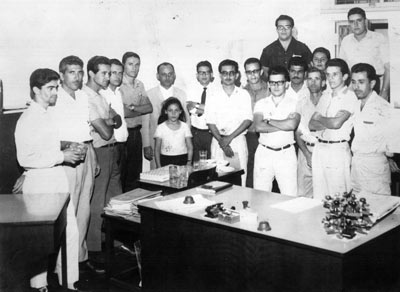 Foto de 1965 de funcionários do Banco da Lavoura de Minas Gerais, hoje Banco Real - Santander. (1) Antônio Ferreira de Matos, (2) Miguel Borges da Silveira (in memoriam), (3) Luciano José Duarte, (4) José de Freitas Macedo (“Zito Macedo”) (in memoriam), (5) Paulo José de Oliveira Neto, (6) e (7) o gerente Clodoaldo Salge (in memoriam) e a filha, (8) o inspetor do banco, (9) Justino Teodoro da Silva (in memoriam), (10) Alcino Alves Barbosa, (11) Edson Alves de Barros, (12) Aloísio Geraldo Godói, (13) Evandro de Paula Ferreira (in memoriam), (14) Eurípedes Pereira, (15) Antônio Salvador Cárdia, (16) Roberto de Melo (in memoriam), (17) Antônio da Silva (“Toninho Saci”) (in memoriam), (18) Alcides de Paula Teles (“Tide”)