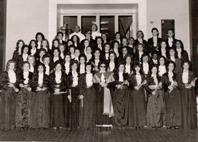 Formandos de 1974, da primeira turma do curso de Letras, da Faculdade de Filosofia, Ciências de Ituverava: (1) o professor Mario Vianna de Vasconcelos, que também era médico; (2) o diretor da FFLC, José Geraldo Evangelista, (4) o secretário da escola, Octacílio de Paula Souza, e os formandos: Alzira Aparecida Cordaro Bucker, Ana Arlene Balan Nascimento, Ana Maria Badran Abdala, Ana Maria Junqueira dos Santos, Ana Maria de Oliveira, Ana Rosa Ferreira de Paula, Célia Maria Viaro, Coraci Mendes Oliveira Campos, Custódia Serafina Jorge, Clélia Nauyta Alves Ferreira, Diva Ferreira Doca Fiod, Doraci de Araújo, Edna Lúcia da Silva, Elza Garoufo Andrade, Helena Maria Brandão Bueno Pinto, Heloísa de Paula Perez Zampieri, Irene Gouvêa de Paula, Laís Falleiros da Silva Faggioni, Mabe Regina Borges de Freitas, Maria Aparecida Aró Vardasca, Maria Aparecida Costa Teoro, Maria Aparecida Daer, Maria Aparecida de Paula Silveira, Maria Aparecida Rodrigues Freitas, Maria Conceição Rodrigues, Maria das Graças Mendes da Silva, Maria Helena Alves, Maria Ignácia Coelho de Abreu, Maria Lúcia Galdiano Peixoto, Maria Lúcia Morgado Santos, Marisa Izilda Pires, Marisa Silva, Marlene Alves de Queiróz Barreto, Milza Jorge Barbosa, Miriam de Paula Leão Mendes, Myrna Soares Nassif, Olga Maria Amêndola Barbosa, Rita Helena Jorge, Rosa Helena Francisco, Rute Cristino Barbosa Oliveira, Sebastiana Ferreira Dias, Shirley Terezinha Tristão Athayde de Souza, Sílvia Aparecida de Souza, Sônia Maria Machado Mirândola, Sônia Regina Gonçalves, Vera Lúcia Avanci, Vera Lúcia de Castro Souza, Vera Lúcia de Paula Assed, Vera Lúcia Pimenta de Freitas, Zélia Mota Ferreira, Zilda Ribeiro Gomes, Antônio Pedro Santos, Benedito Gonçalves de Oliveira, Benevides Garcia Barbosa Júnior, Braz Porfirio Siqueira, João Paulo Nogueira, José Luiz Andrielli, José Walteneor Mauad, Moacyr Oliveira Villa, Norival Marques Martins, Paulo Ribeiro de Mendonça, Roberto Mirândola, Sérgio Gonçalves Costa e Walther Spedito Segantini