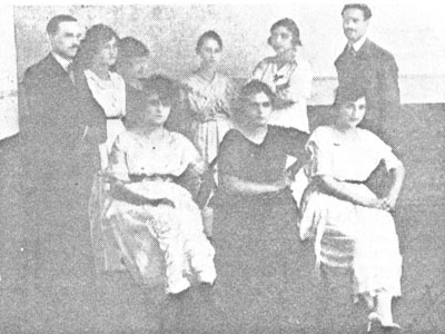 Professores do ano de 1920, do Grupo Escolar Fabiano Alves de Freitas: (1) Dorival Dias Minhoto, (2) Corina L. Minhoto, (3) Silvia d’Elia, (4) Rosa de Lima, (5) Jaci de Toledo, (6) Raphael Gonzalez, que era o diretor; (7) Iracema de Godoi, (8) Elvira Gasparini e (9) Noemia Martha Feijão