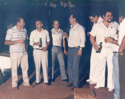 A foto deve ser dos anos 80, provavelmente no início da construção do campus II da Fundação Educacional de Ituverava, no sítio das Acácias. (1) José (“Zito”) Jabur, agropecuarista, (2) o prefeito da cidade de Pedregulho dr. Eduardo Saad, (3) o gerente do Banespa, José Fernando de Lázari, (4) Geraldo Gil Faggioni, que era gerente de Crédito Rural do Banespa, (5) e (6) os médicos e irmãos Ricardo Sandoval Garcia e Alcides Mesquita Garcia Júnior (in memoriam)