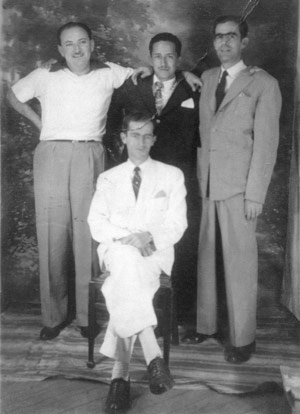 (1) Não identificado, (2) Eurípedes Alves Ferreira (“Nenê Baião”), e os primos, os irmãos (3) Francisco Alves Ferreira (“Chiquinho da Farmácia”) e (4) Airton Alves Ferreira, que era empresário e agropecuarista