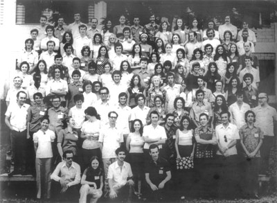 Foto do final do TLC, realizado de 26 a 18 de outubro de 1972, na cidade de Brodowski. O Treinamento de Lideranças Cristãs é um movimento da igreja católica fundado pelo padre Harold Rahm,s.j. na década de 60, com o objetivo de ser a "porta" de entrada para o jovens na Igreja Católica. (1) Cley Jorge de Oliveira, (2) Padre Facco, (3) Padre Vivi (São Joaquim da Barra), (4) Padre Juju (Gravatal), (5) Henrique Garcia Nascimento, (6) Lúcio Faleiros (São Joaquim da Barra), (7) Airton Custódio, (8) Ivo Vanuchi (São Joaquim da Barra, (9) João Mesquita, (10) Regina Nassif, (11) Cléa Jabur, (12) Eri Aveiro, (13) Ademar de Paula Freitas (Pizinho), (14) Edson Peraro, (15) Dalva (São Joaquim da Barra, (16) Fumagalli (BB – São Joaquim da Barra), (17) Pedro Cristino Barbosa, (18) Mirizilda Caruzi (Zidô)