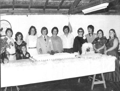 Foto de 29 de janeiro de 1977 do casamento de (1) e (2) Marcionílio Fernandes (“Maçã”) e Edna Maria Gomes Fernandes, (3), (4) e (5), o irmão do noivo Maximino Francisco Fernandes, a cunhada Celene dos Santos Fernandes e o sobrinho Marcelo dos Santos Fernandes, (6) e (7) Arlindo Correa e esposa, (8) a mãe do noivo, Aurora Fávero, (9) Roberto Chigueiti Okida, (10) Geni Fernandes da Silva e (11) Joseane Fernandes da Silva