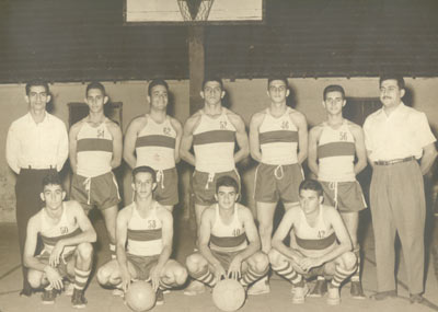 Foto do final dos anos 50 ou início dos anos 60 da equipe de basquete do Tiro de Guerra que era comandada pelo até então sargento e hoje capitão, Washington de Souza Gomes. O técnico era o professor Alexandre Miguel Bueno. A quadra era da Associação Atlética Ituveravense, que era onde hoje é a piscina do clube. (1) O capitão Washington de Souza Gomes, (2) Melanias de Matos Ribeiro, (3) José Calin Germano, (4) Valter Jacob Cury, (6) Adolfo Medina Bucker, (7) Alexandre Miguel Bueno (in memoriam), (8) Fued Alexandre Abrão, (9) Edson Ribeiro da Rocha, (10) Celso Nunes (“Piolin”), (11) José Contart (“Piau”).
