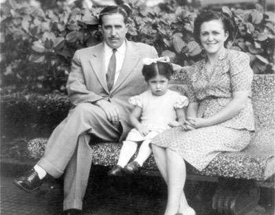 Na década de 40, a família Haley Henares visitava Ribeirão Preto, e foi fotografada na Praça XV. Só para registro: na época as estradas não eram asfaltadas e precárias, haviam poucos veículos e sem o conforto de hoje, era uma verdadeira odisséia ir a Ribeirão Preto, e poucas famílias ou pessoas tinham esta oportunidade. (1) Dr. Haley Henares, que era um dos mais conceituados advogados de sua época, (2) a esposa Cotinha Sandoval Henares, (3) a filha Maria Guadalupe Sandoval Henares (“Lupinha”)